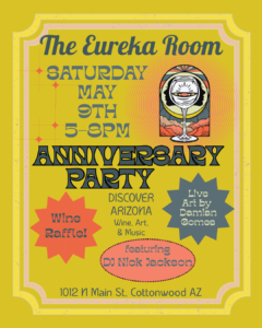 Stay “in the know”! We are proud to be Cottonwood Arizona’s new local hotspot! The Eureka Room is more than just a tasting room, it’s an experience. Experience one of our events with us. This page will keep you up to date with what dates you don’t want to miss!! Our events are community based and centered around friends, high end artwork of the Verde Valley, and the Best Wines that Southern Arizona has to offer!